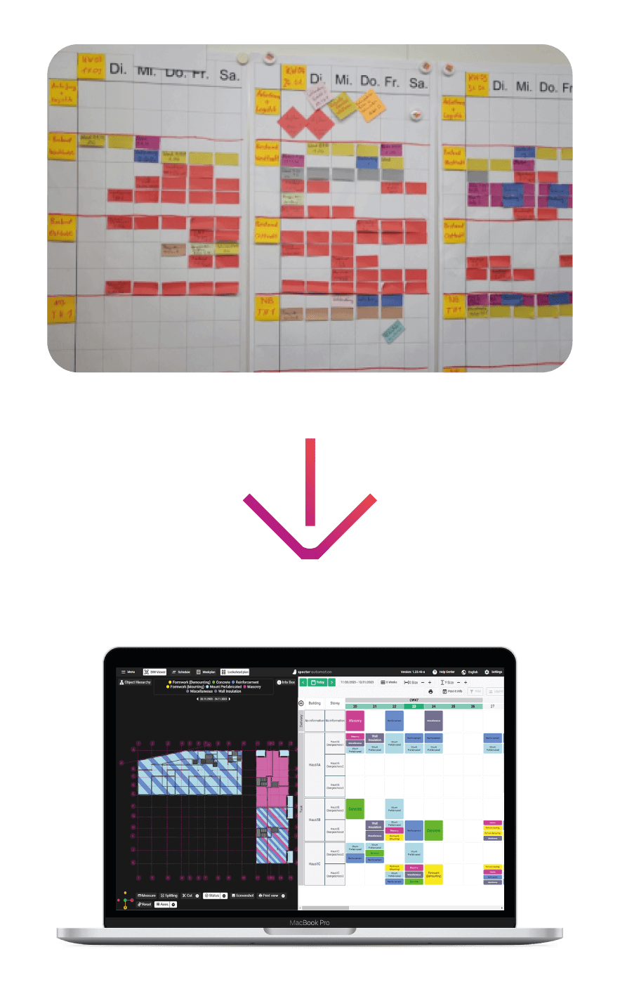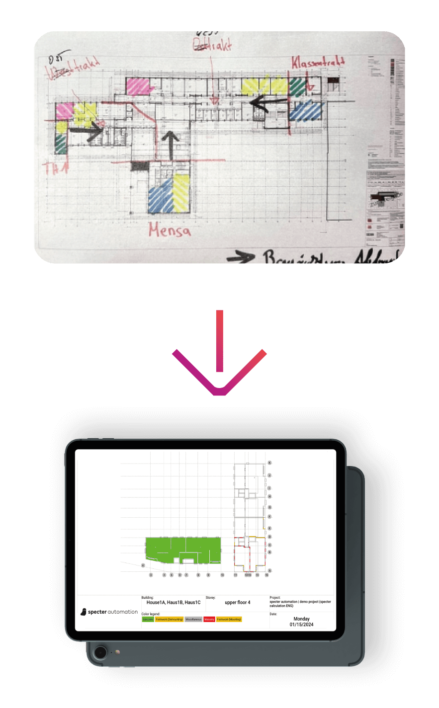 Sie kennen das: Papierpläne und Post-its führen oft zu Unübersichtlichkeit und Ineffizienz auf der Baustelle. Mit specter haben Sie alle Projektdaten an einem Ort und steuern Ihre Baustelle intuitiv und in 3D.
